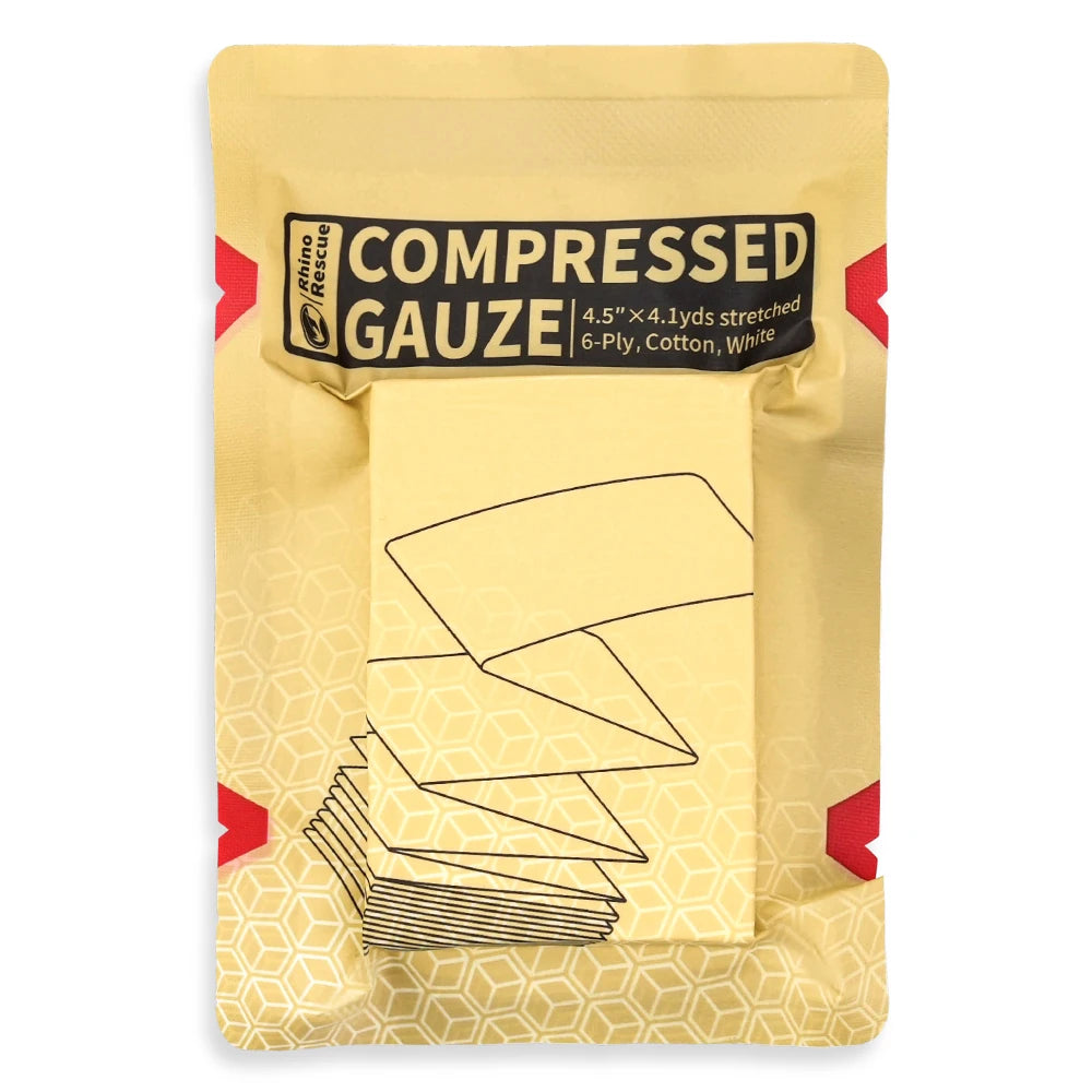 RHINO RESCUE Sterile Compressed Gauze is your ultimate solution for emergency wound dressing, first aid, and trauma preparedness.